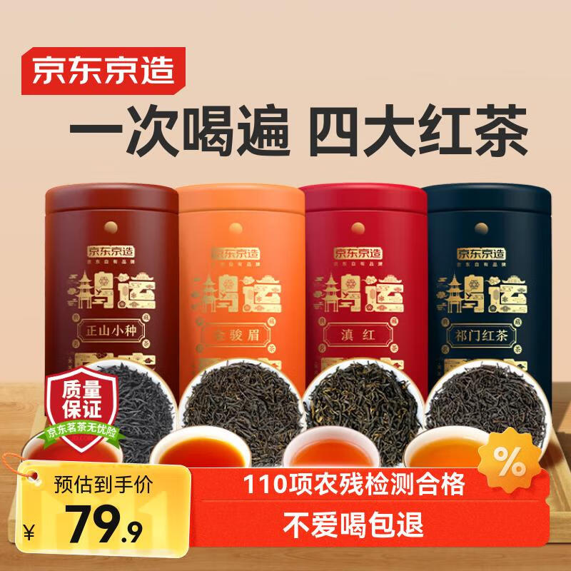京东京造 鸿运四大红茶500g金骏眉正山小种滇红祁门红茶茶叶礼盒自营送礼