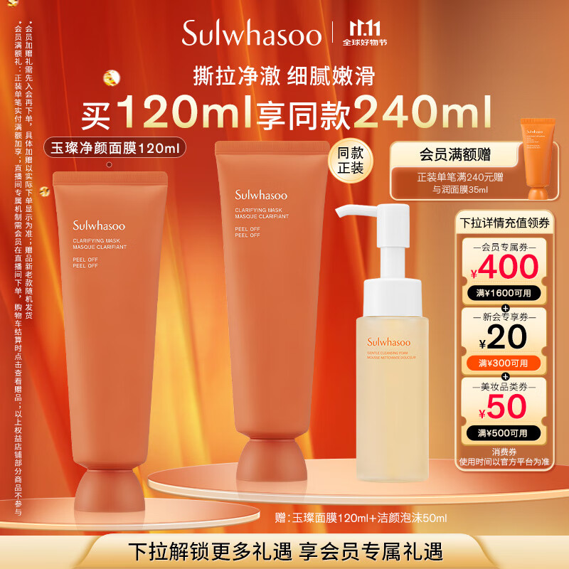 雪花秀玉璨净颜撕拉面膜120ml升级清洁毛孔去角质黑头礼物