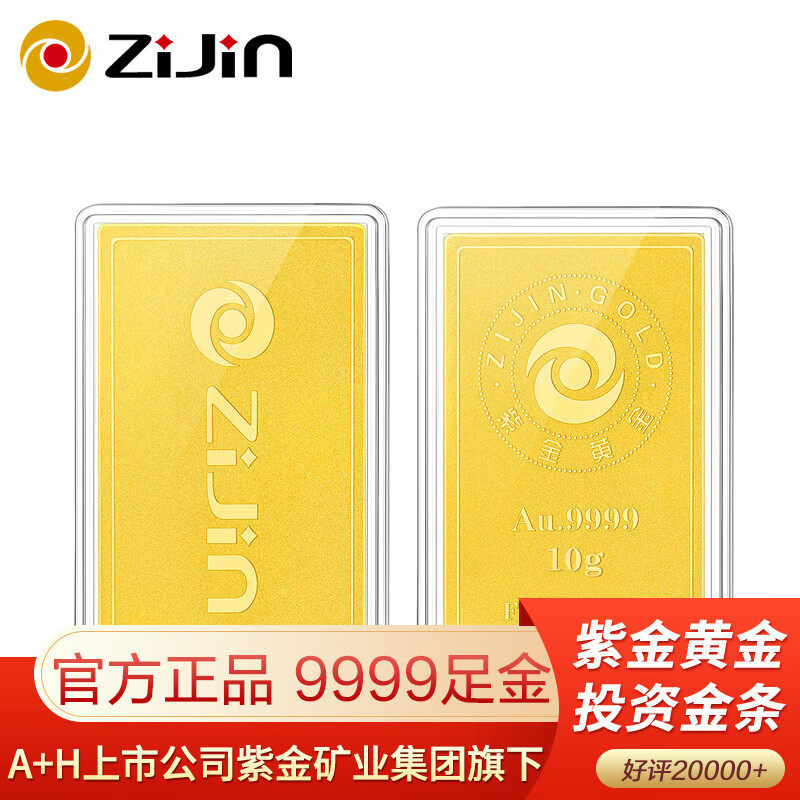 【京东商城】【礼品箱包】紫金黄金Au9999磨砂款投资金条 10g 投资收藏礼物 紫金矿业旗