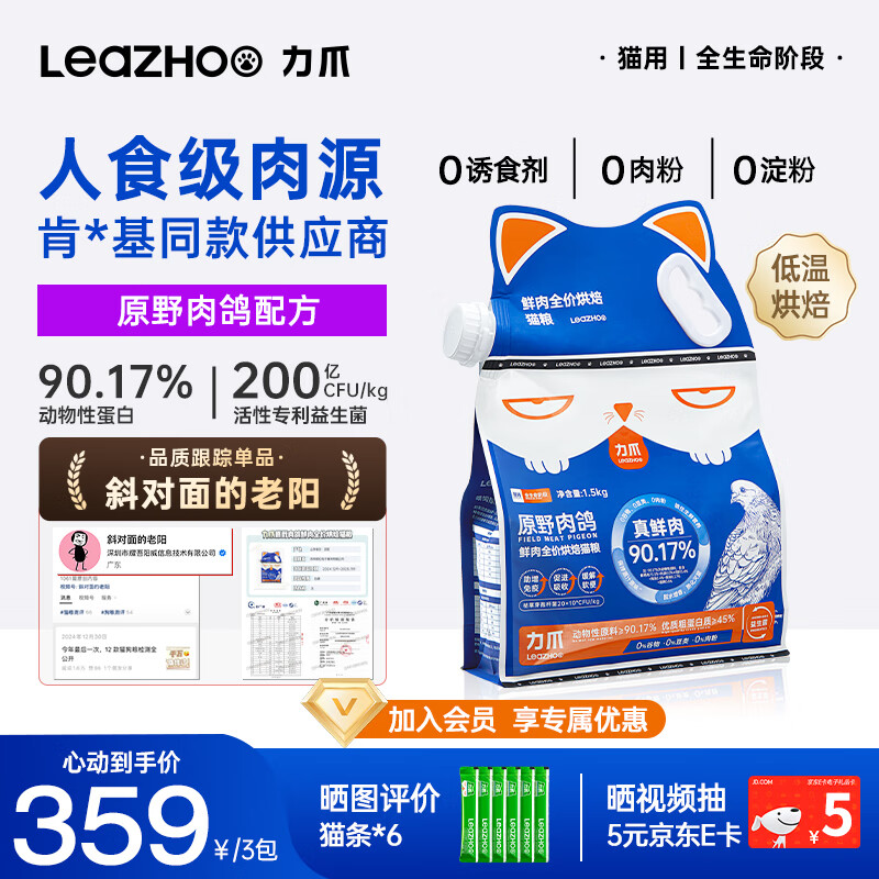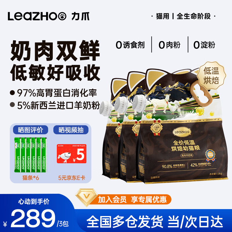 【京东商城】【食品保健】力爪 LEAZHOO低温烘焙幼猫猫粮羊奶鲜肉无谷全价高营养通用 1k