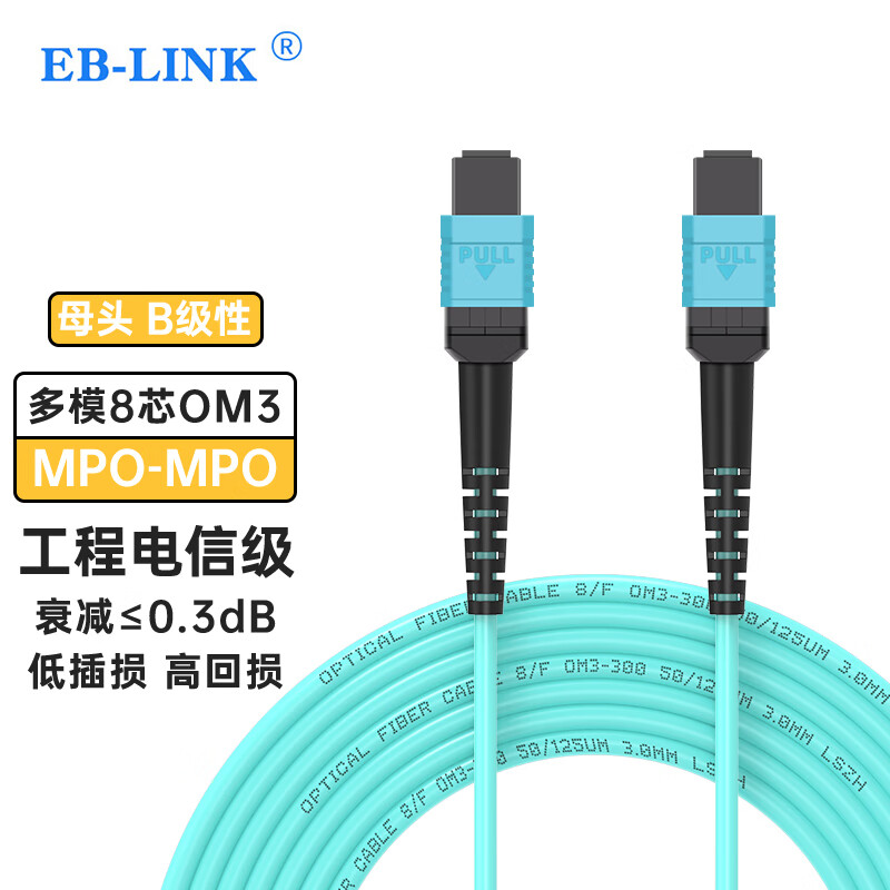 【京东商城】【电脑办公】EB-LINK 光纤跳线工程电信级40米MPO-MPO母头多模8芯OM3集束40G光