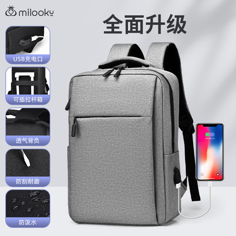 【京东商城】【礼品箱包】Milooky双肩电脑包男女士背包笔记本双肩包旅行书包商务出差