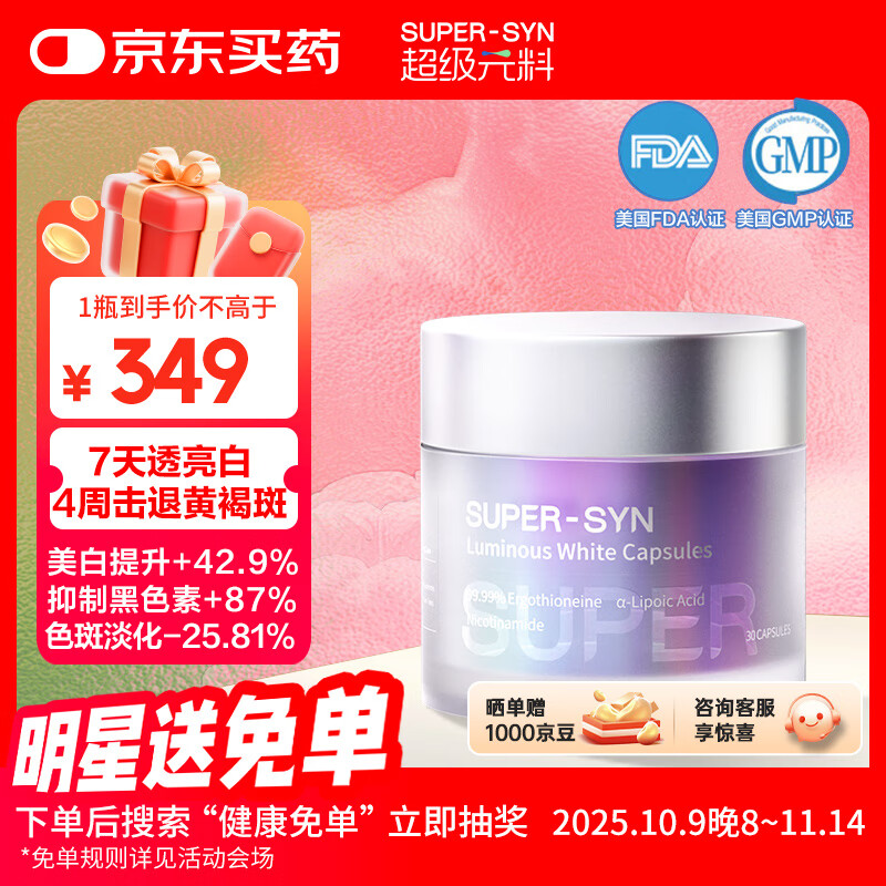 【京东商城】【食品保健】超级元料麦角硫因超光子胶囊烟酰胺谷胱甘肽VC去黄提亮美白