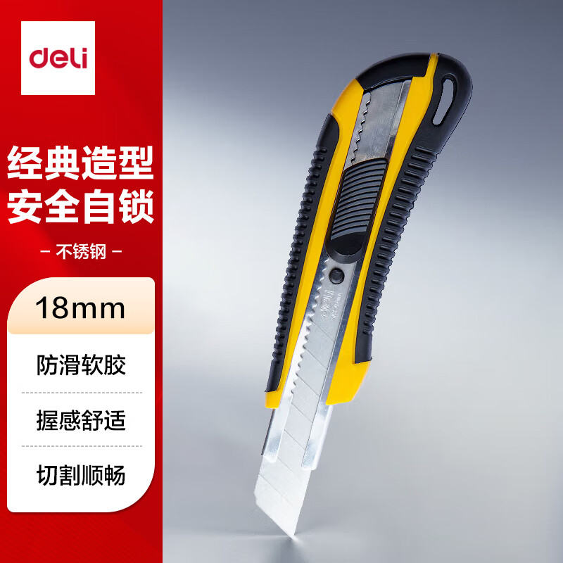 【京东商城】【电脑办公】得力(deli)大号全软胶护手美工刀 自动锁定功能裁纸刀 办