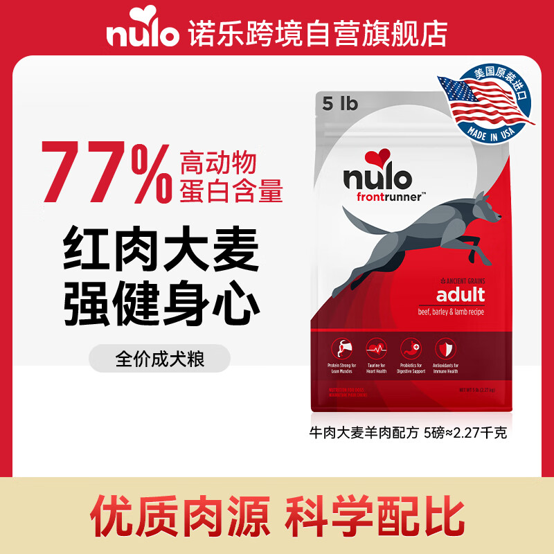 【京东商城】【食品保健】NULO领跑者成犬粮全价高蛋白减重牛肉大麦羊肉5磅/2.27kg效期26