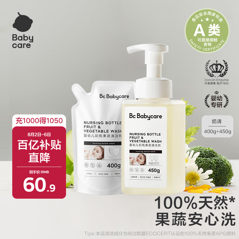 【京东商城】【母婴用品】babycare谷物酵素奶瓶清洁剂奶瓶清洗剂婴儿餐具清洗液果蔬洗