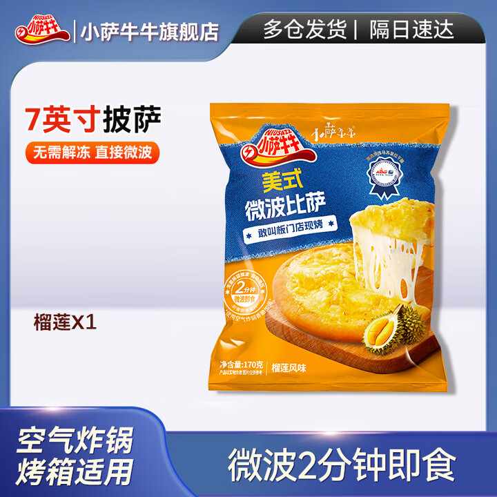 【京东商城】【食品保健】小萨牛牛金枕头榴莲披萨170g/袋 速冻pizza比萨半成品空气炸锅