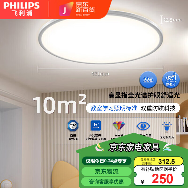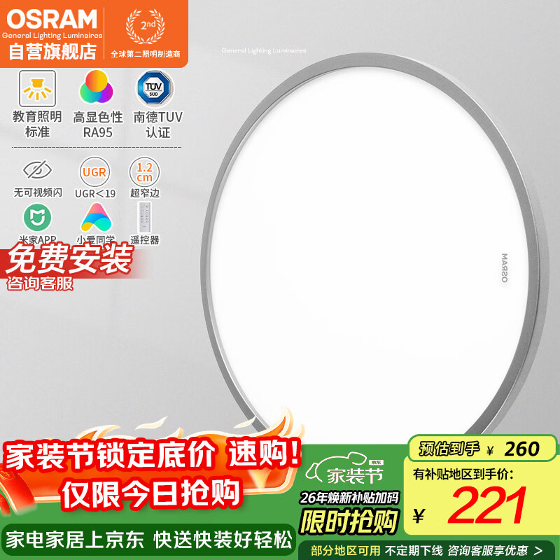 【京东商城】【家居家装】欧司朗(OSRAM)卧室灯吸顶灯已接入米家智控灯全光谱护眼家