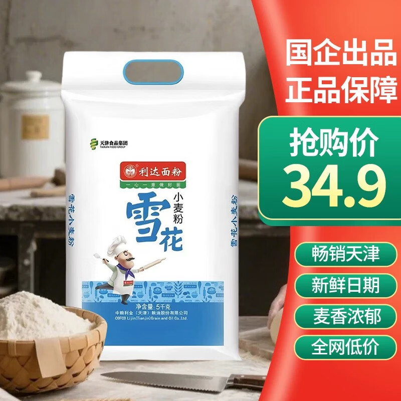 【京东商城】【食品保健】利达雪花小麦粉5千克 中筋面粉 包子饺子馒头 通用小麦粉家