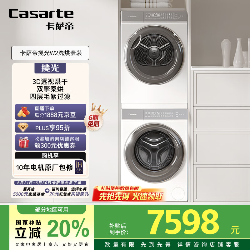 【京东商城】【生活家电】卡萨帝(Casarte)揽光W2洗烘套装懒人洗衣机直驱滚筒全自动10