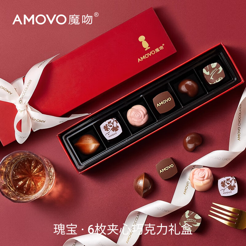【京东商城】【食品保健】魔吻(AMOVO)瑰宝巧克力礼盒 6粒64g 比利时进口料生日礼物伴