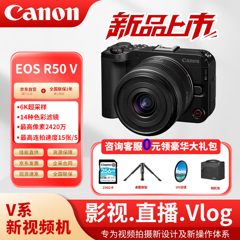 【京东商城】【手机数码】佳能(Canon)EOS R50 V微单相机小巧便携6K超采样RF-S14-30镜头vlog