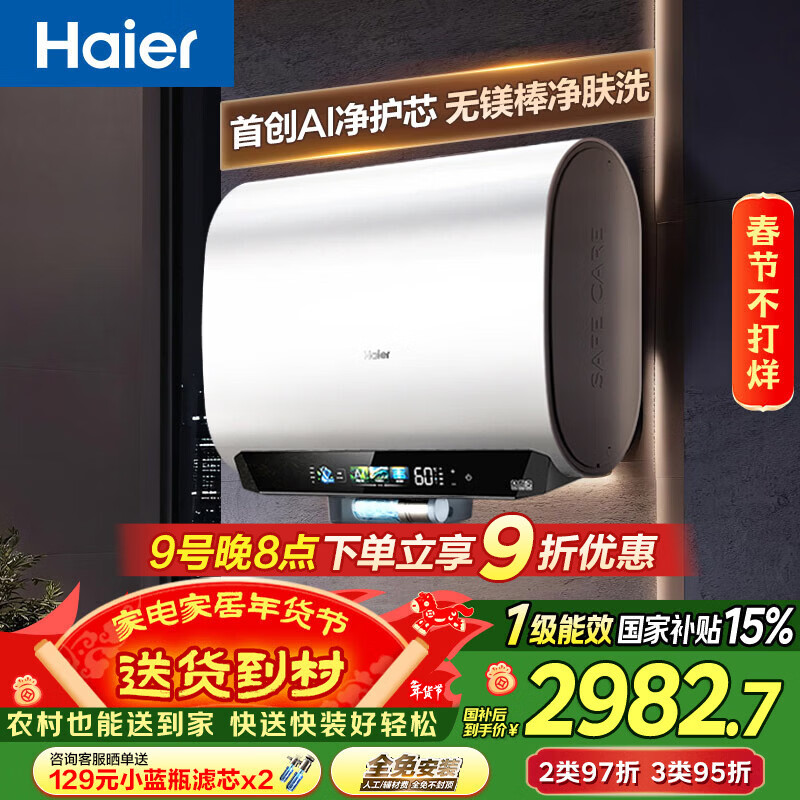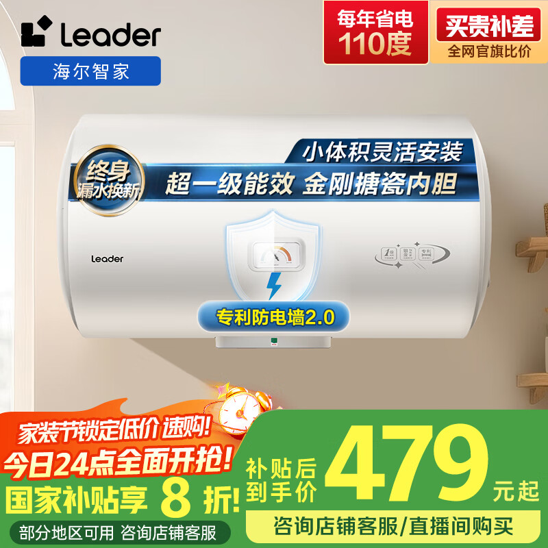 【京东商城】【生活家电】海尔 海尔(Haier)Leader系列 60升电热水器一级能效2200W老房租