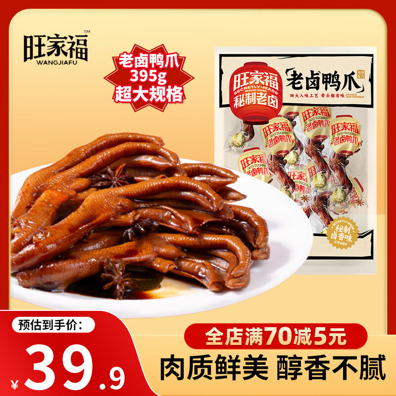 【京东商城】【食品保健】旺家福老卤鸭爪老卤味395g土鸭掌卤味鸭爪独立包装追剧小零