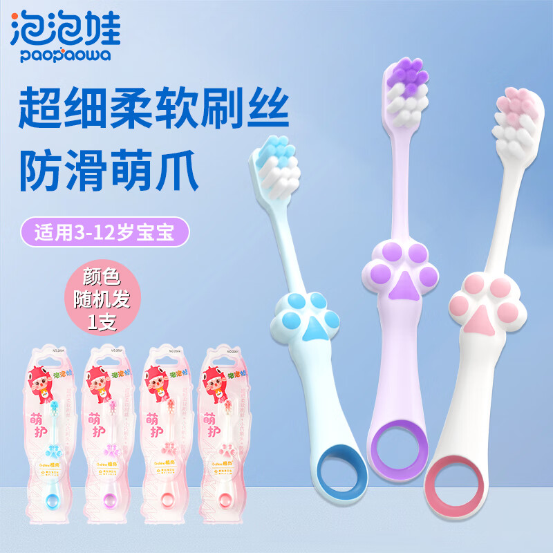 【京东商城】【美容美妆】泡泡娃儿童牙膏3-10岁软毛小巧刷头防滑萌爪防蛀牙刷清洁牙