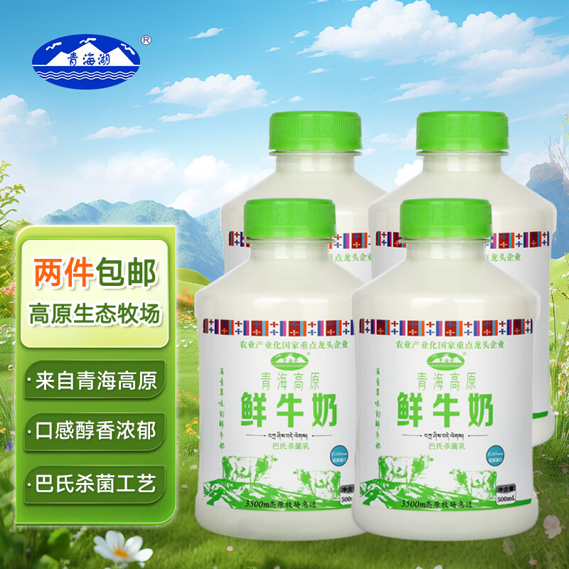 【京东商城】【食品保健】青海湖 青海高原鲜牛奶500ml*4 低温奶 巴氏杀菌 100%生牛乳