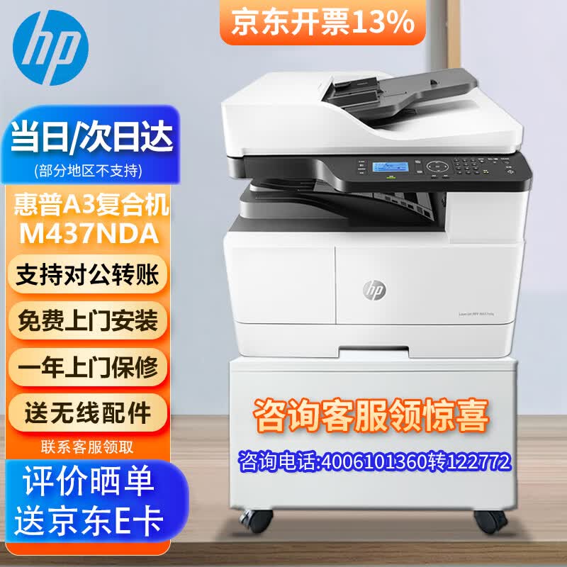 【京东商城】【电脑办公】惠普(HP)打印机M437nda a3a4黑白激光复印机扫描机一体机 自
