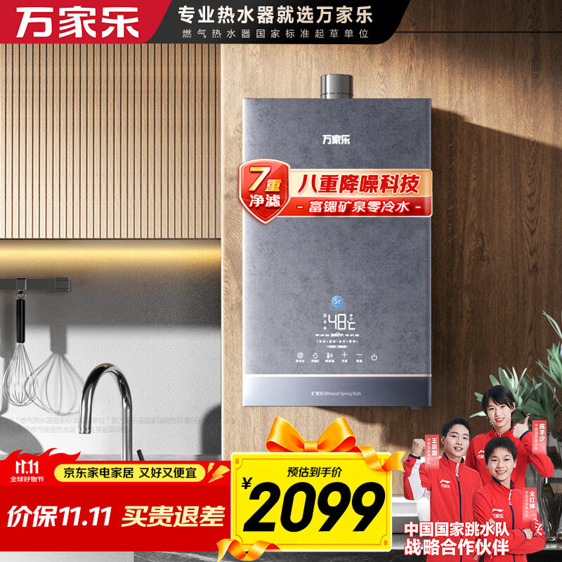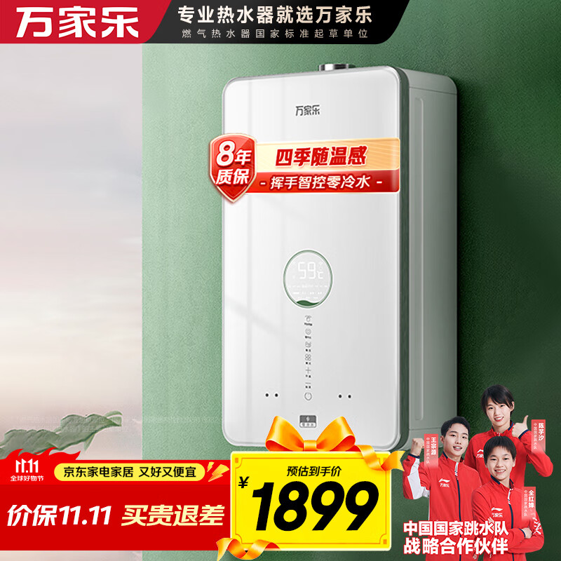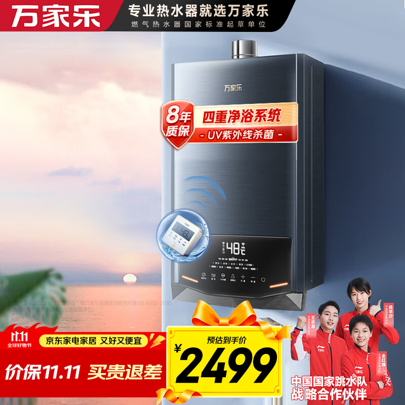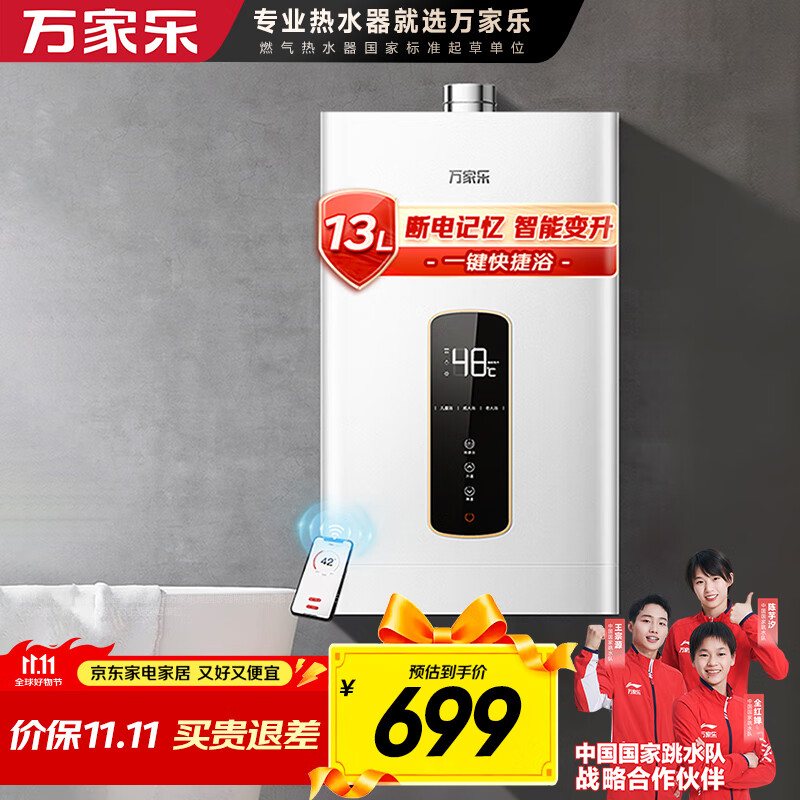 【京东商城】【生活家电】万家乐【节能王DLU3】燃气热水器13升天然气一键增压恒温零