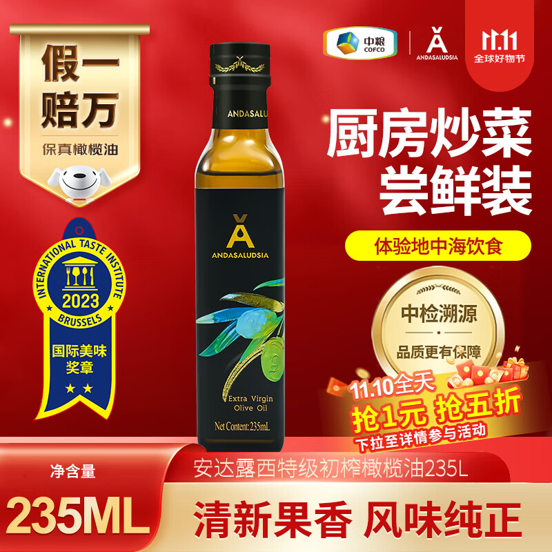【京东商城】【食品保健】安达露西特级初榨橄榄油100%纯进口西班牙原料小瓶235ml食用