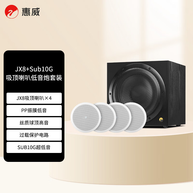【京东商城】【生活家电】惠威(HiVi)JX8*4+Sub10G 定阻吸顶音响嵌入式家庭影院套装天花