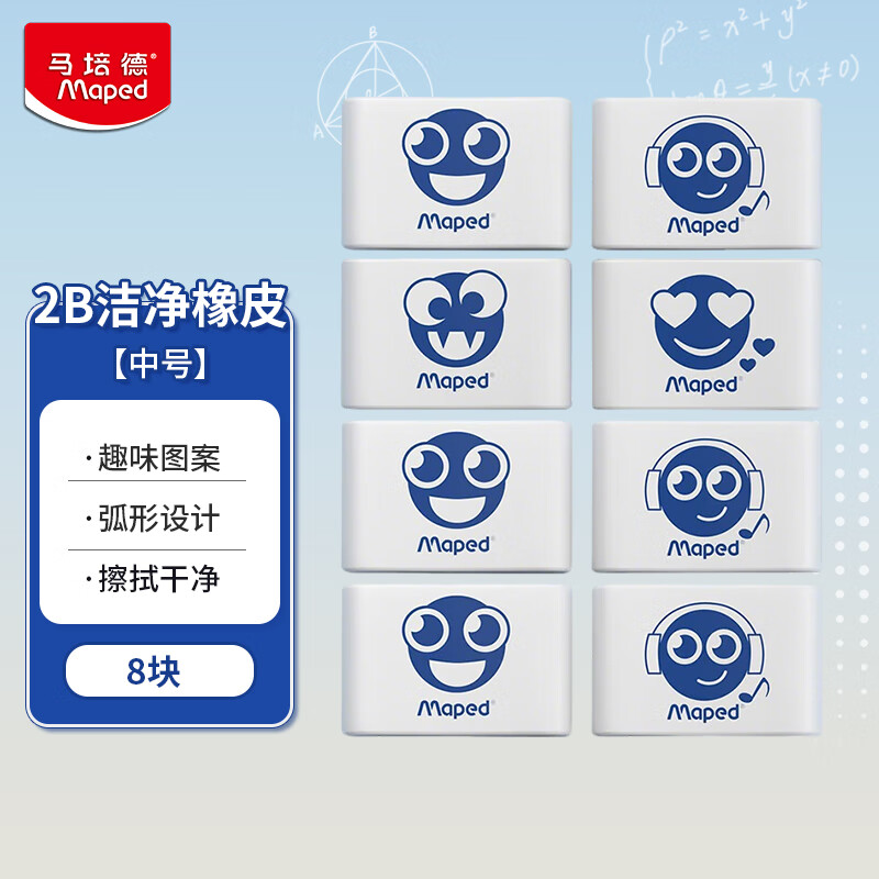 【京东商城】【电脑办公】马培德Maped 洁净橡皮2B中号8块装 考试橡皮擦儿童无屑干净小