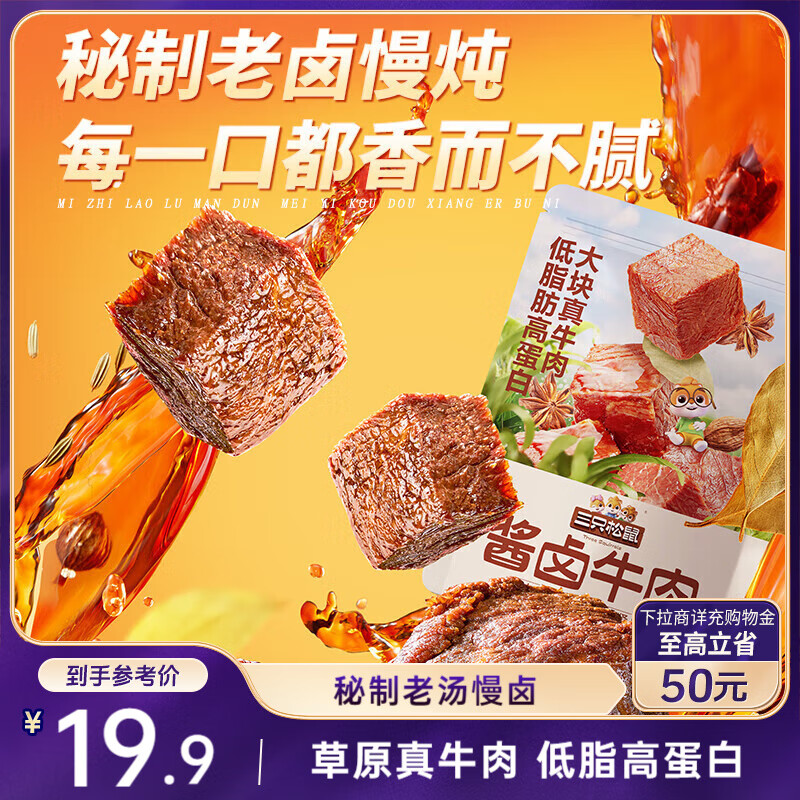 【京东商城】【食品保健】三只松鼠酱卤牛肉150g袋装五香味休闲零食肉干肉脯即食真空