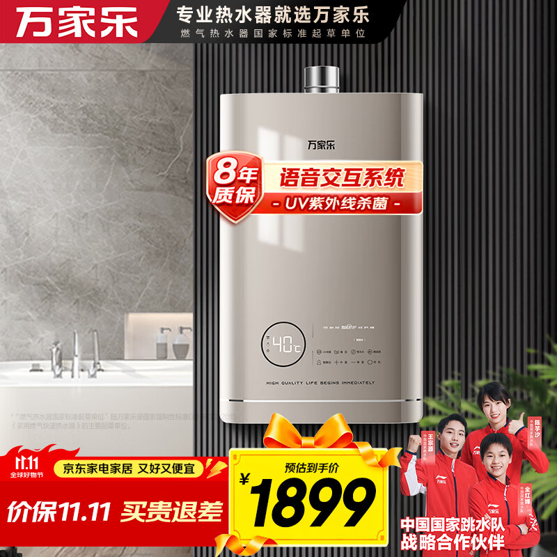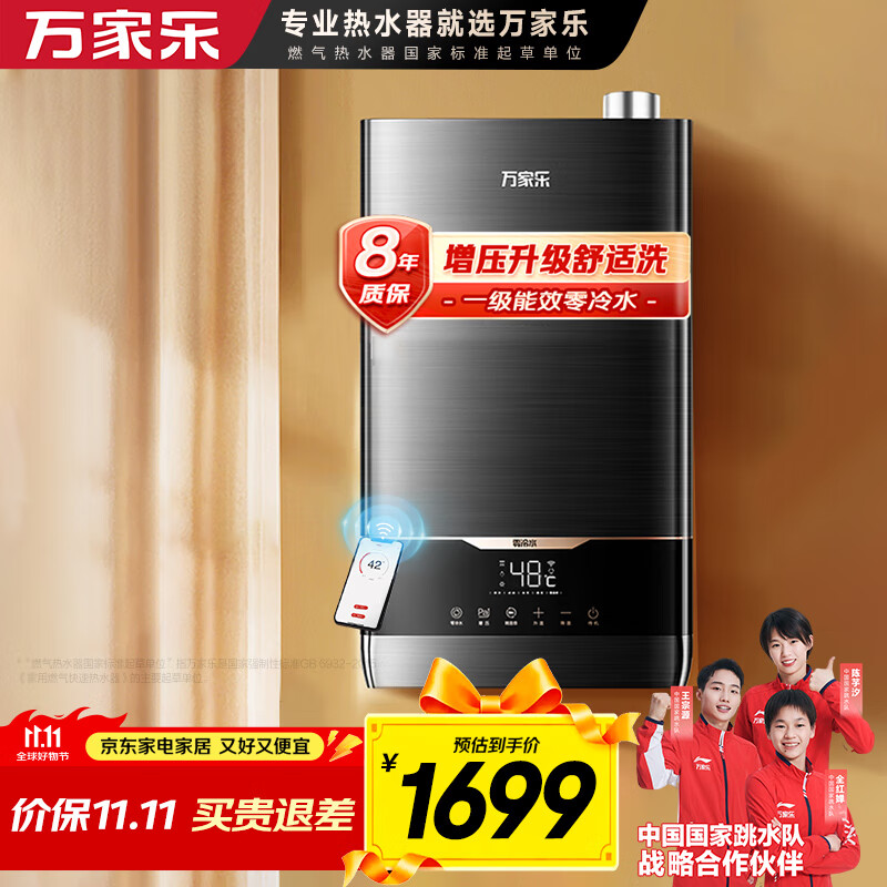 【京东商城】【生活家电】万家乐16升燃气热水器零冷水富氧杀菌增压恒温双屏分控智控