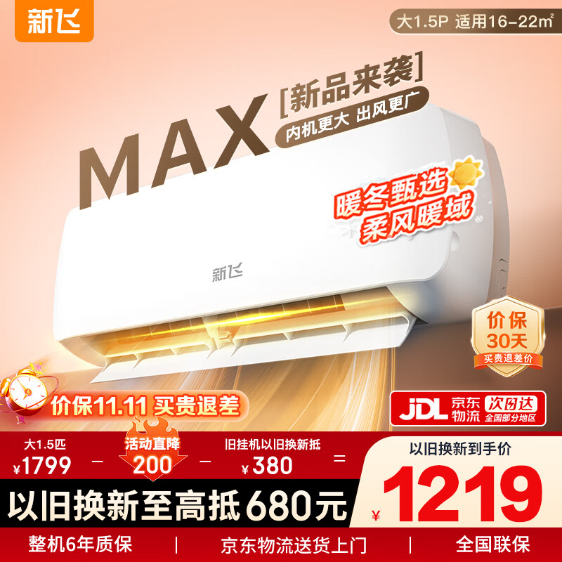 【京东商城】【生活家电】新飞大1.5匹 新一级能效 超省电变频冷暖空调 以旧换新 家用
