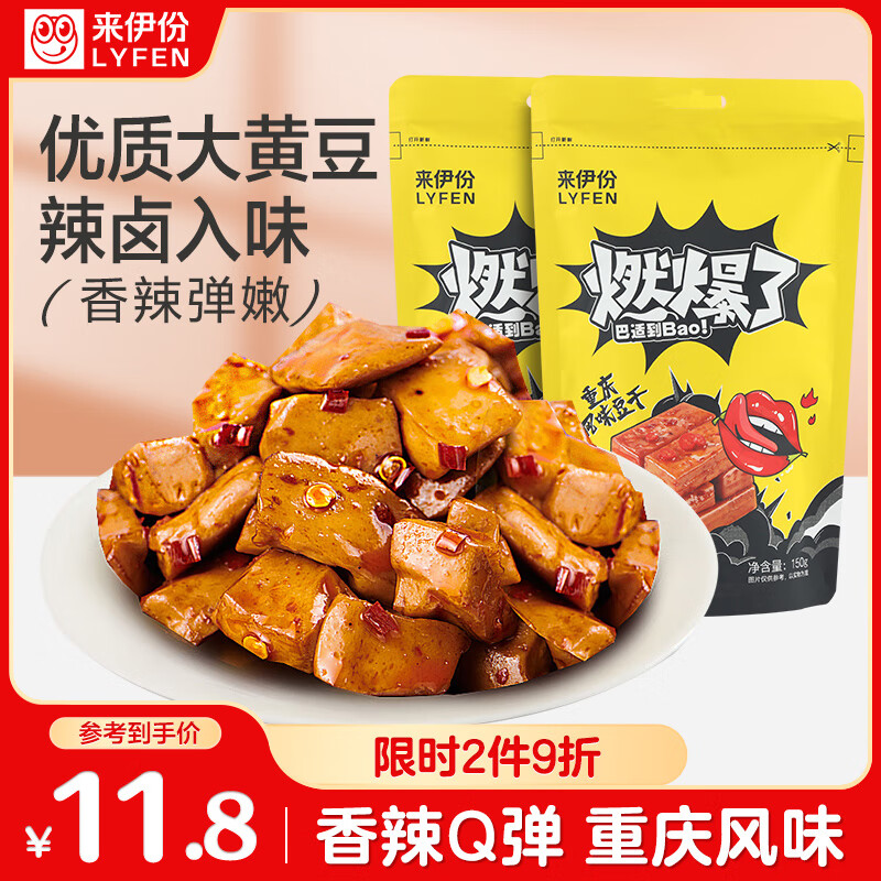 【京东商城】【食品保健】来伊份燃爆了重庆风味豆干300g(2袋装) 手撕素食豆干零食即食