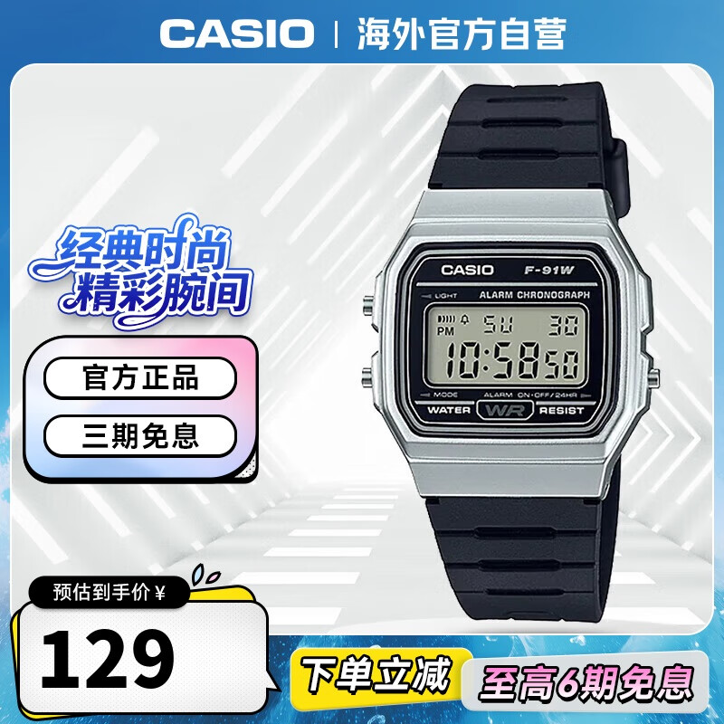 【京东商城】【礼品箱包】卡西欧防水休闲潮流小方块电子表 F-91WM-7ADF