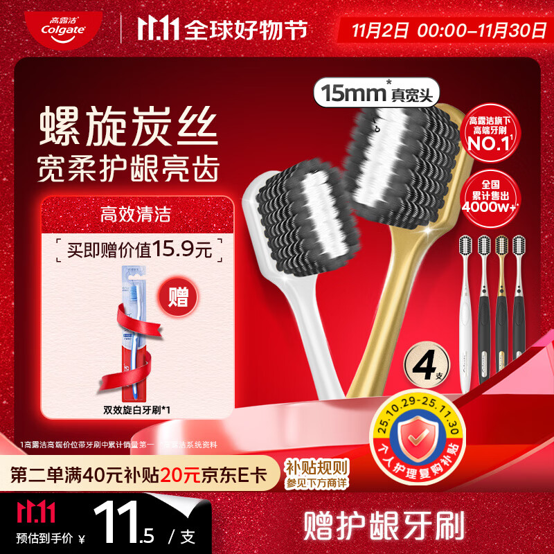 【京东商城】【美容美妆】高露洁(Colgate)48孔宽头超细软毛炭旋丝护龈去渍牙刷男士2