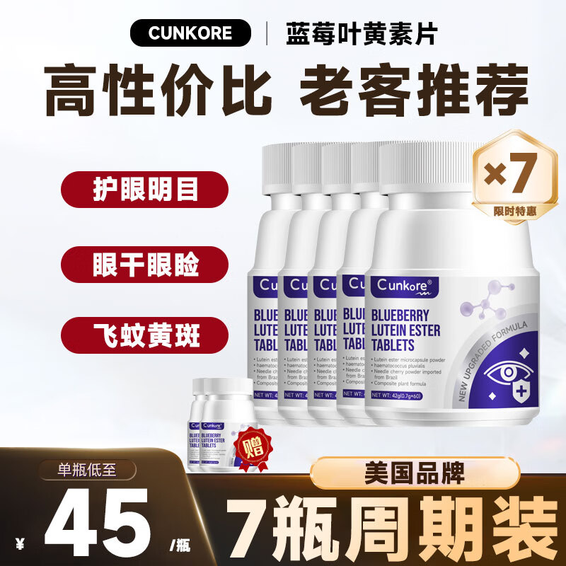 【京东商城】【食品保健】CUNKORE美国蓝莓叶黄素儿童青少年成人护眼睛疲劳干涩 5瓶年