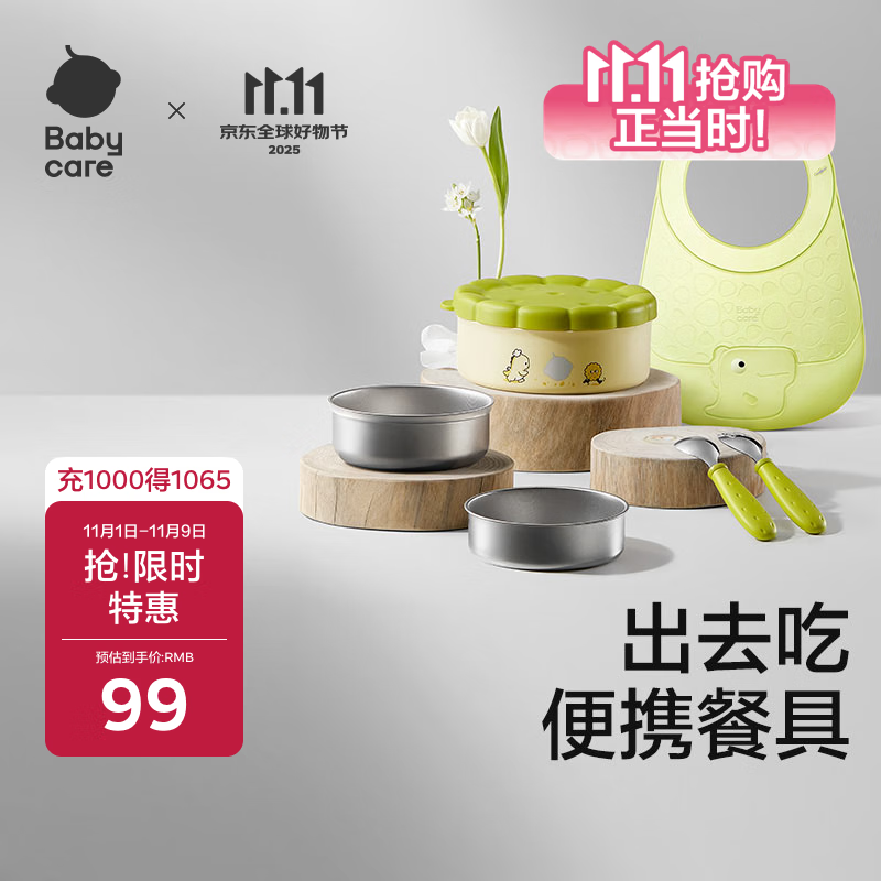 【京东商城】【母婴用品】babycare宝宝外出便携辅食碗儿童餐具多功能旅行碗叉勺保温杯