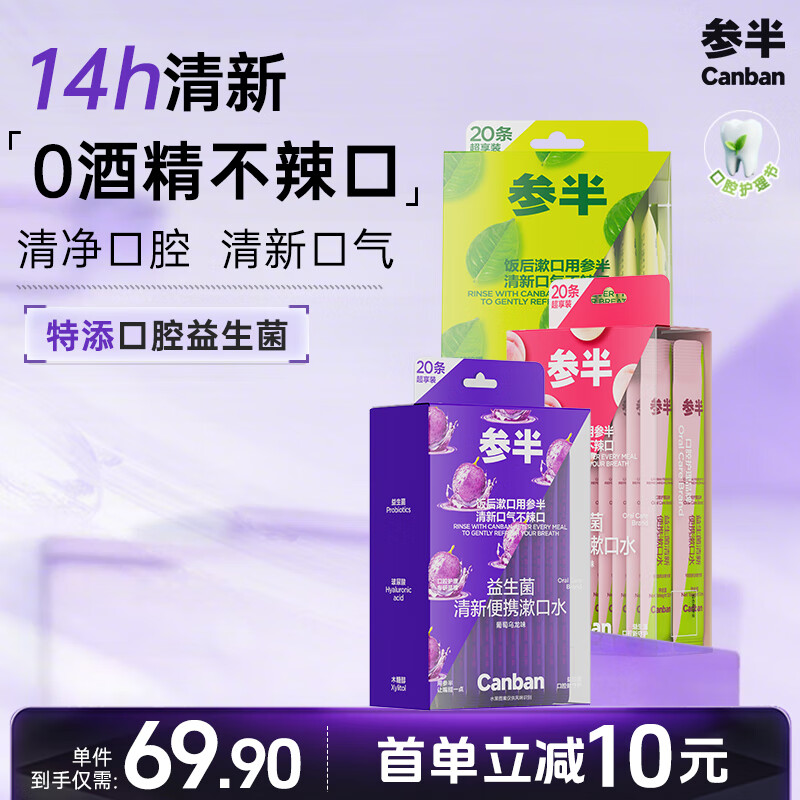 【京东商城】【美容美妆】参半益生菌漱口水清新口气去异味口臭99%抑菌便携条装胶盒