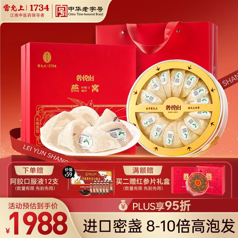 【京东商城】【食品保健】雷允上养悦心马来干燕窝礼盒100g送妈妈长辈孕妇礼品滋补品