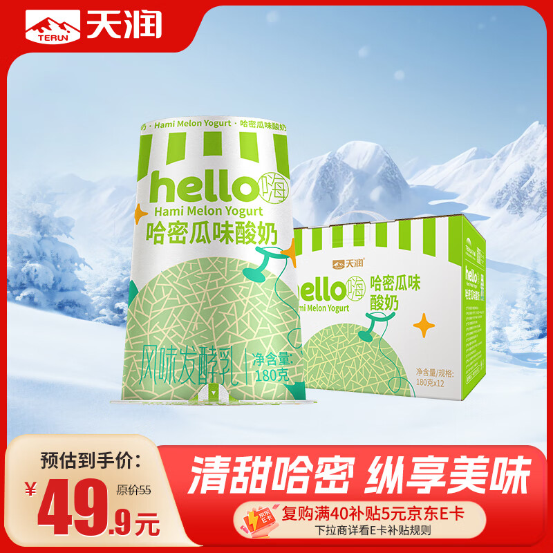 【京东商城】【食品保健】天润新疆产地 哈密瓜益生菌Hello杯低温酸奶 180g*12杯