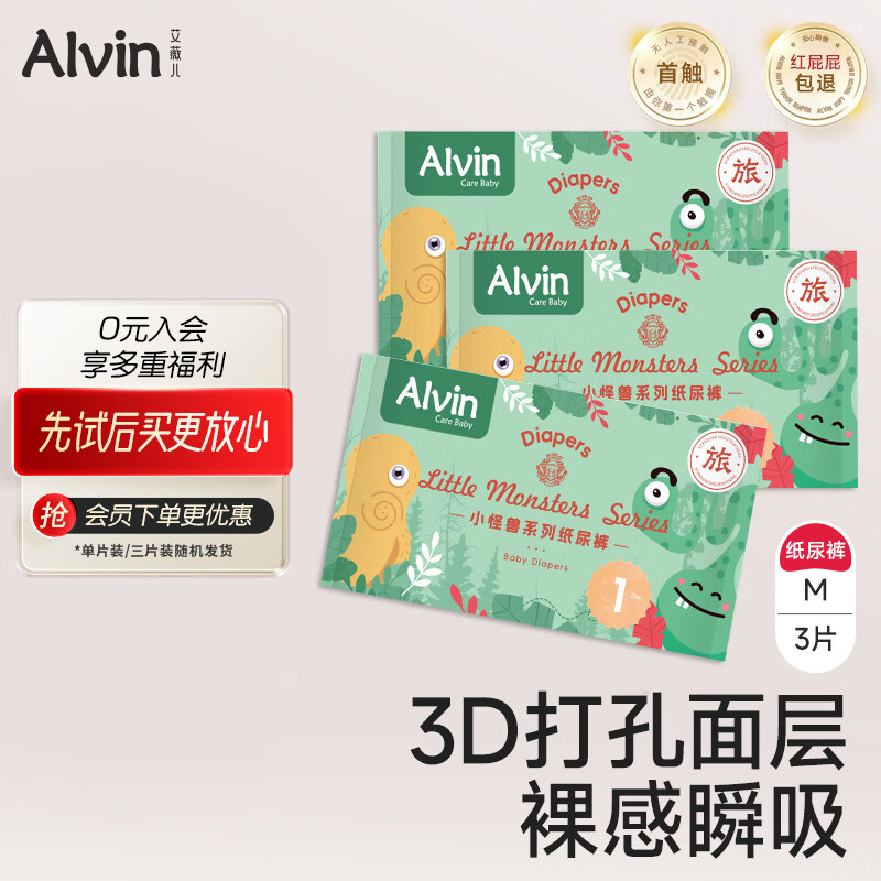 【京东商城】【母婴用品】艾薇儿Alvin【品牌直供 安心品质】小怪兽纸尿裤超薄试用装M