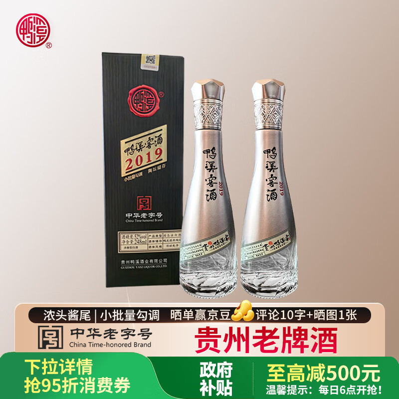 【京东商城】【食品保健】鸭溪窖酒·2019 浓香型白酒 52度 248ml*2瓶 双支装(含礼品袋)