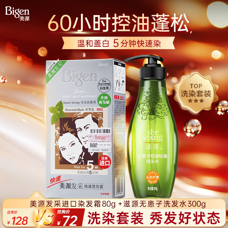 【京东商城】【美容美妆】Bigen美源发采进口染发膏(棕黑色 882)+滋源无患子洗发水300g