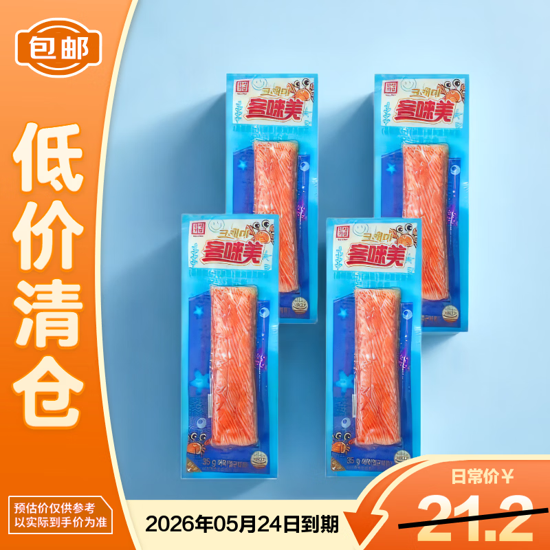 【京东商城】【食品保健】客唻美原味蟹味棒(鱼糜制品)35g*4 即食手撕蟹柳蟹肉棒【