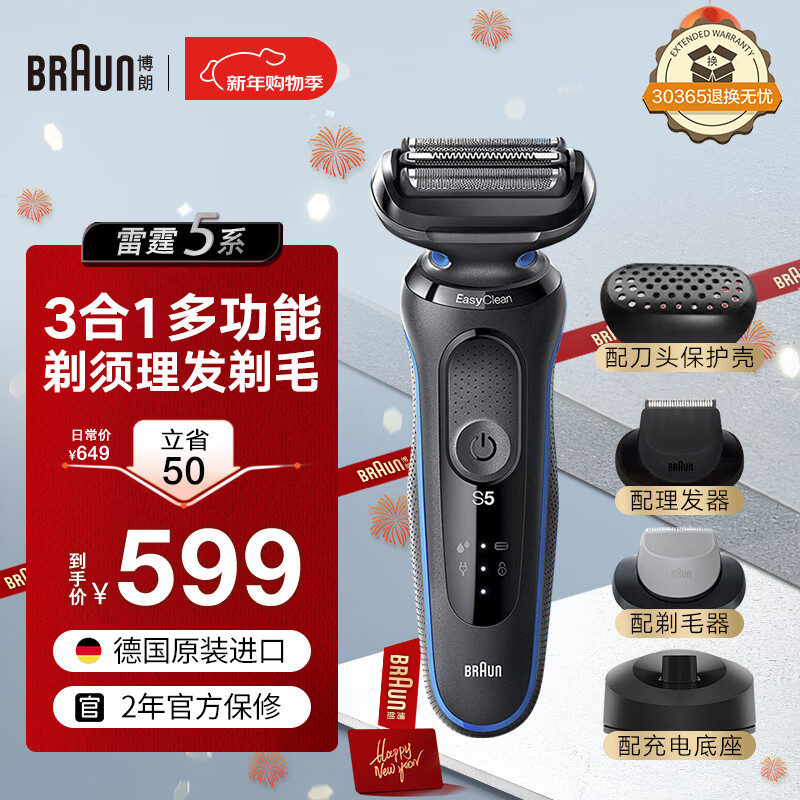 【京东商城】【美容美妆】博朗(BRAUN)男士电动剃须刀便携往复式刮胡刀胡须修剪器男