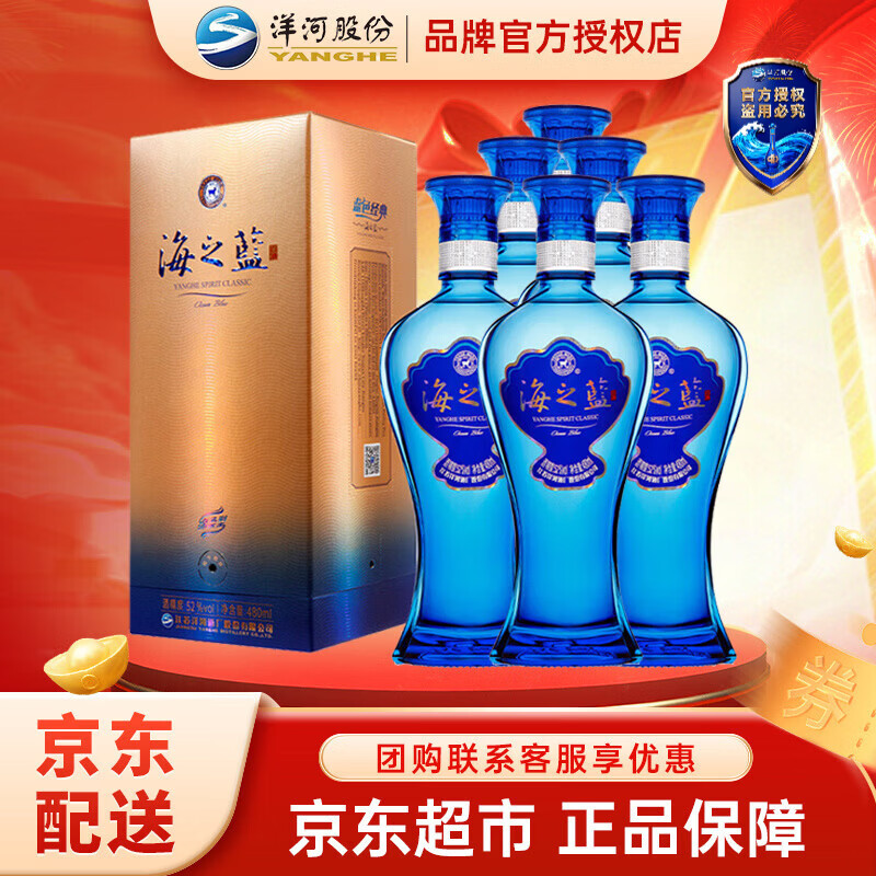 【京东商城】【食品保健】洋河 海之蓝蓝色经典 口感绵柔型白酒整箱(内配手提袋)过