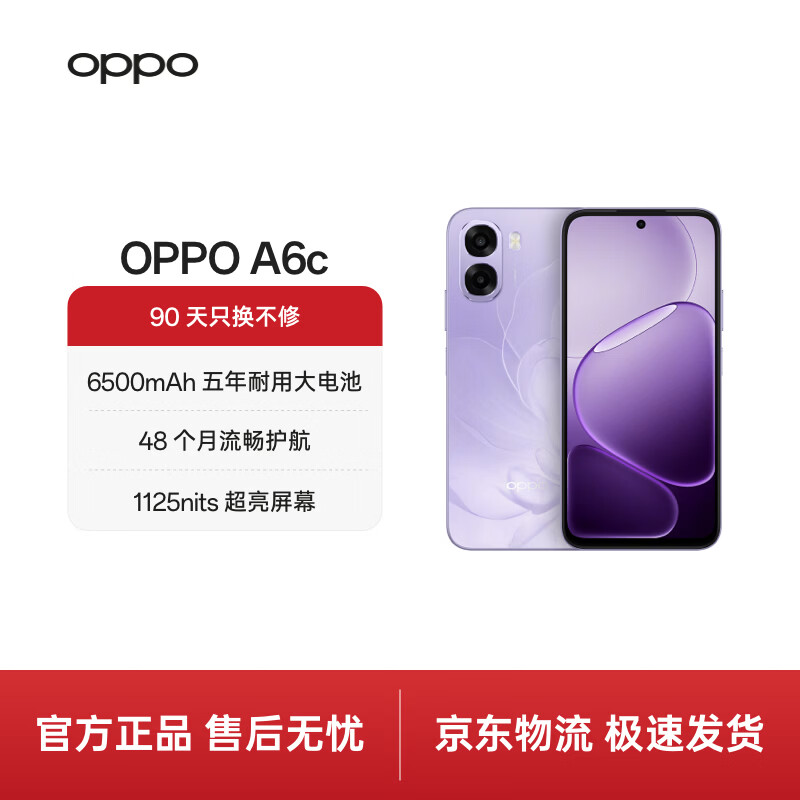 【京东商城】【手机数码】OPPO A6c 6GB+128GB 橄榄绿 6500mAh 五年耐用大电池 48个月流畅护航