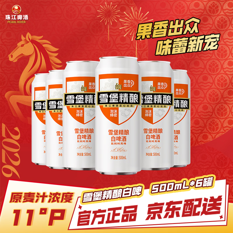【京东商城】【食品保健】珠江啤酒11度 雪堡精酿比利时风味白啤酒 500ml*6听 元宵节送