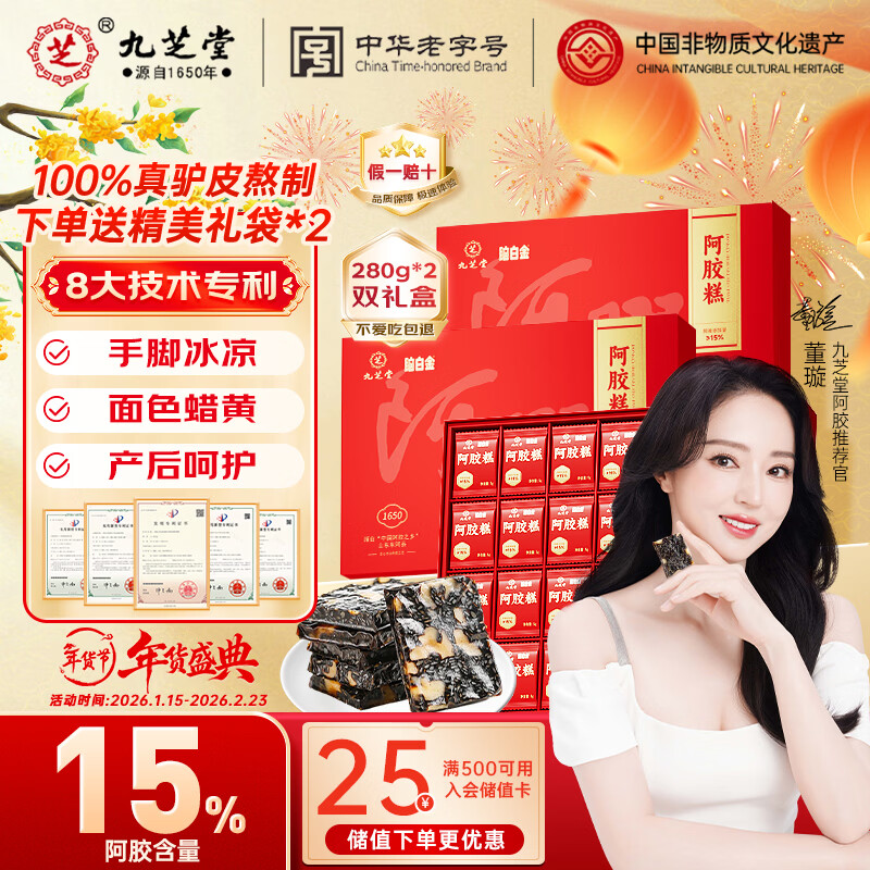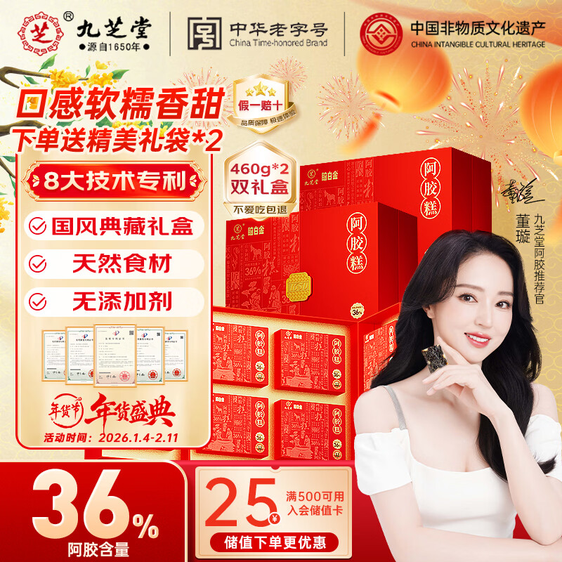 【京东商城】【食品保健】九芝堂阿胶糕礼盒460g*2盒(36%阿胶)即食东阿滋补品气血送父母