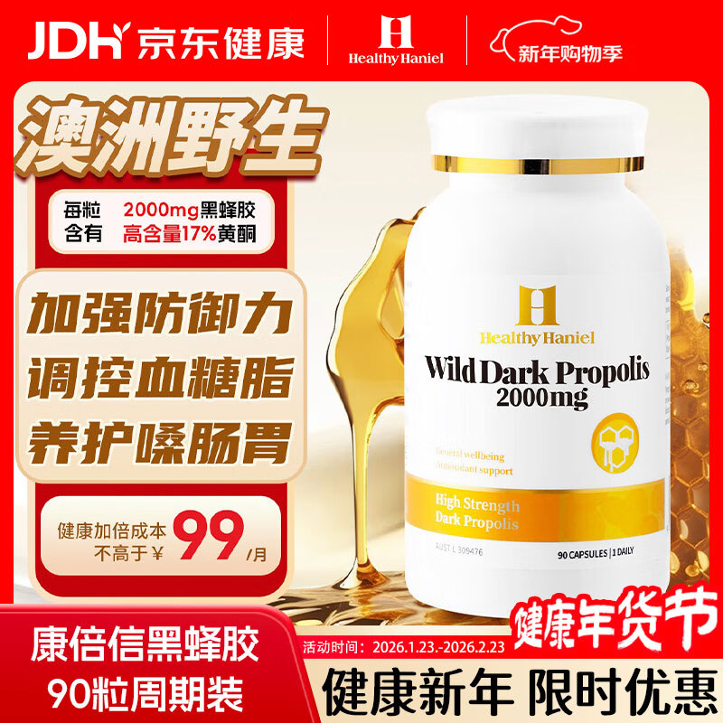 【京东商城】【食品保健】Healthy Haniel康倍信野生黑蜂胶蜂王浆 高浓度2000mg 高含量17%黄