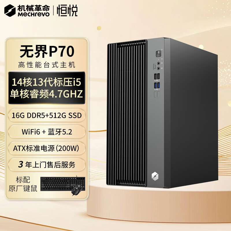 【京东商城】【电脑办公】机械革命恒悦 无界P70娱乐办公台式机电脑主机(标压13代酷睿i