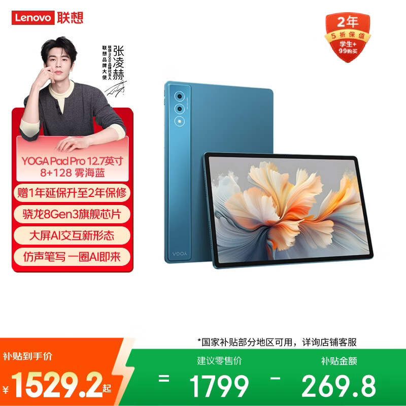 【京东商城】【电脑办公】联想YOGA PadPro12.7英寸 骁龙8Gen3 2.9K 无损抗反射超感屏 8+128G蓝