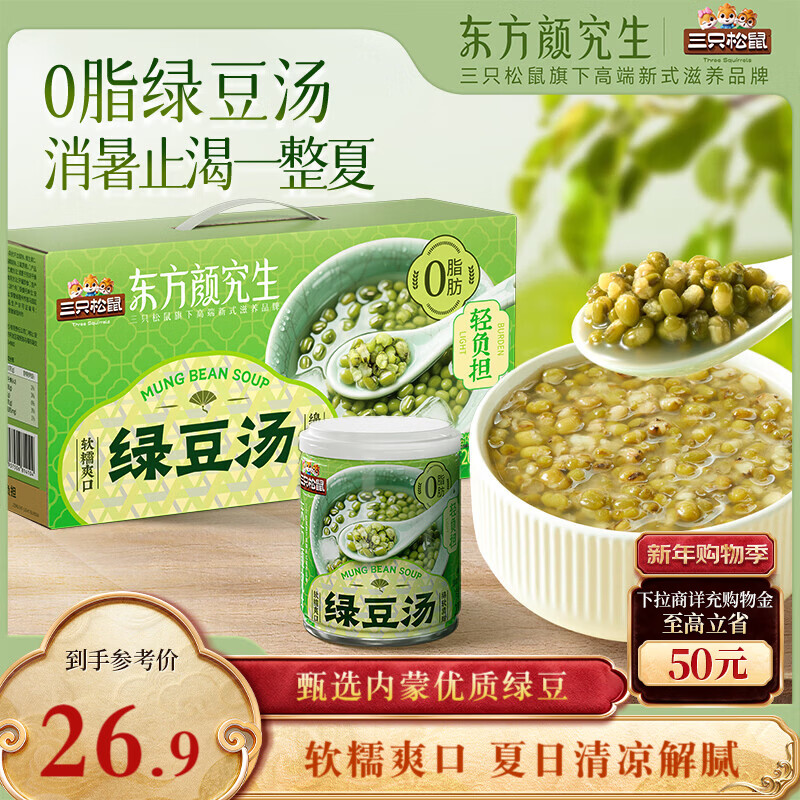 【京东商城】【食品保健】三只松鼠东方颜究生绿豆汤1600g/8罐 礼盒夏季消暑绿豆粥罐头