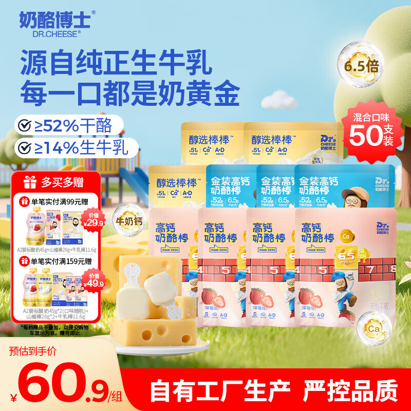 【京东商城】【母婴用品】高钙奶酪棒混合口味50支装 宝宝儿童零食0添加牛奶棒 享婴儿